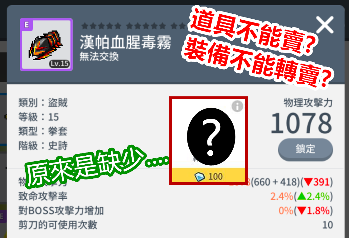 【楓之谷M】道具不能賣,買了裝備不能轉賣,該怎麼解決? - 裝備, 問題, 商店, 神奇剪刀, 道具不能賣, 轉賣, 解決, 楓葉 - 敗家達人推薦