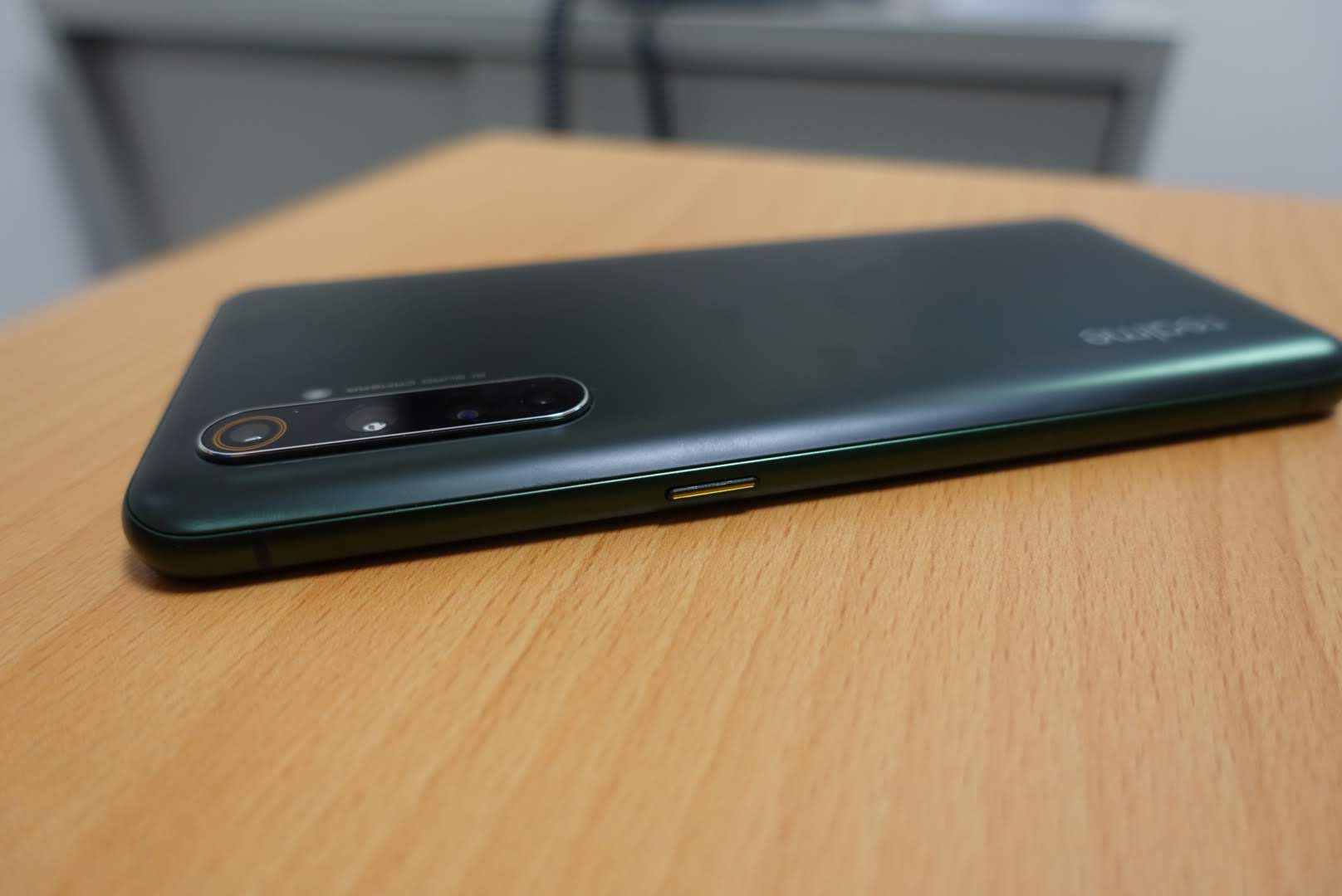 realme X50 pro 右側只有電源鍵,但是中間有一條黃色,鏡頭上方也有兩圈黃色光圈,